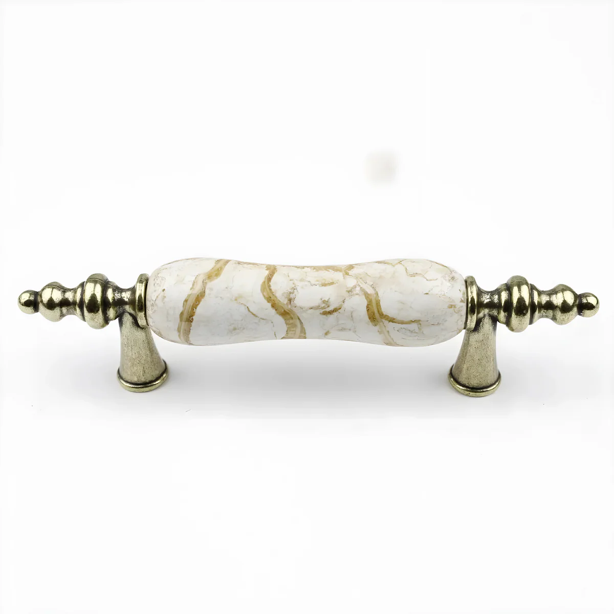 Add a touch of vintage charm to your furniture with the Antique Ceramic & Zinc Pulls. These unique handles are a perfect blend of classic and rustic styles, featuring a beautifully distressed, marbled ceramic bar and elegant zinc ends. The antique color and polished finish give each piece a timeless look, adding character to any cabinet, dresser, or drawer.
