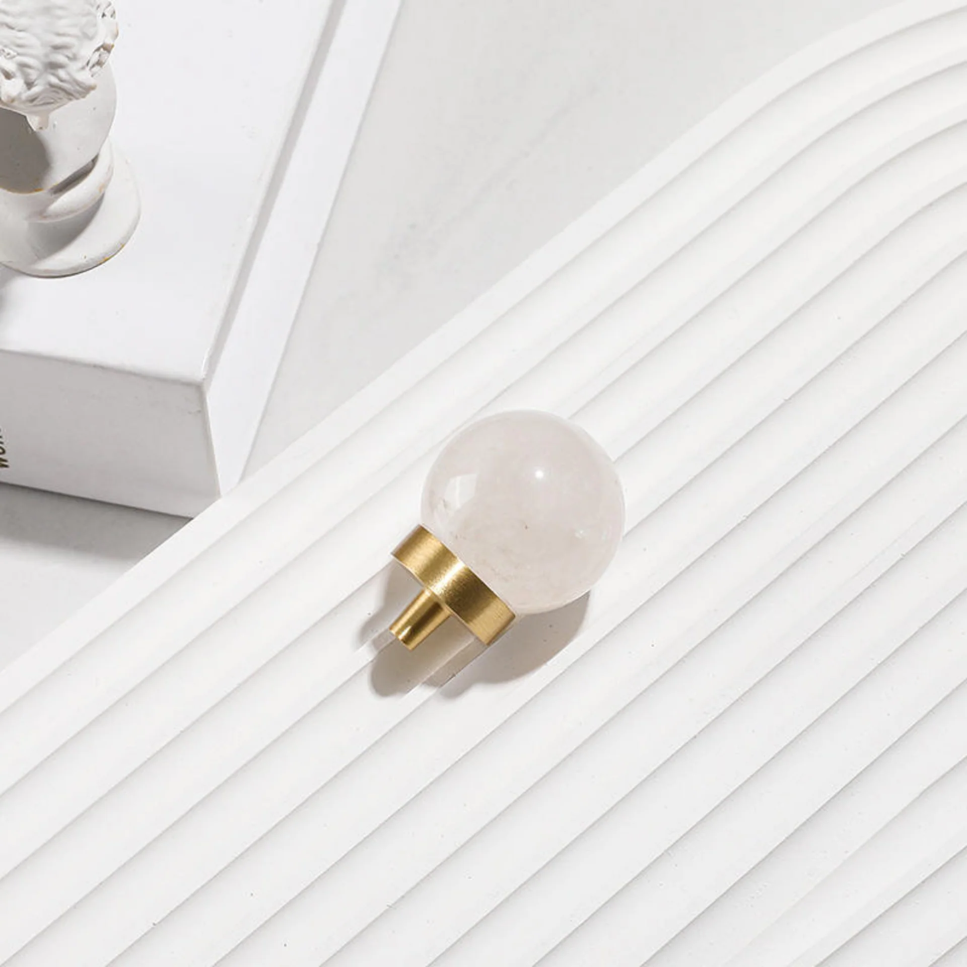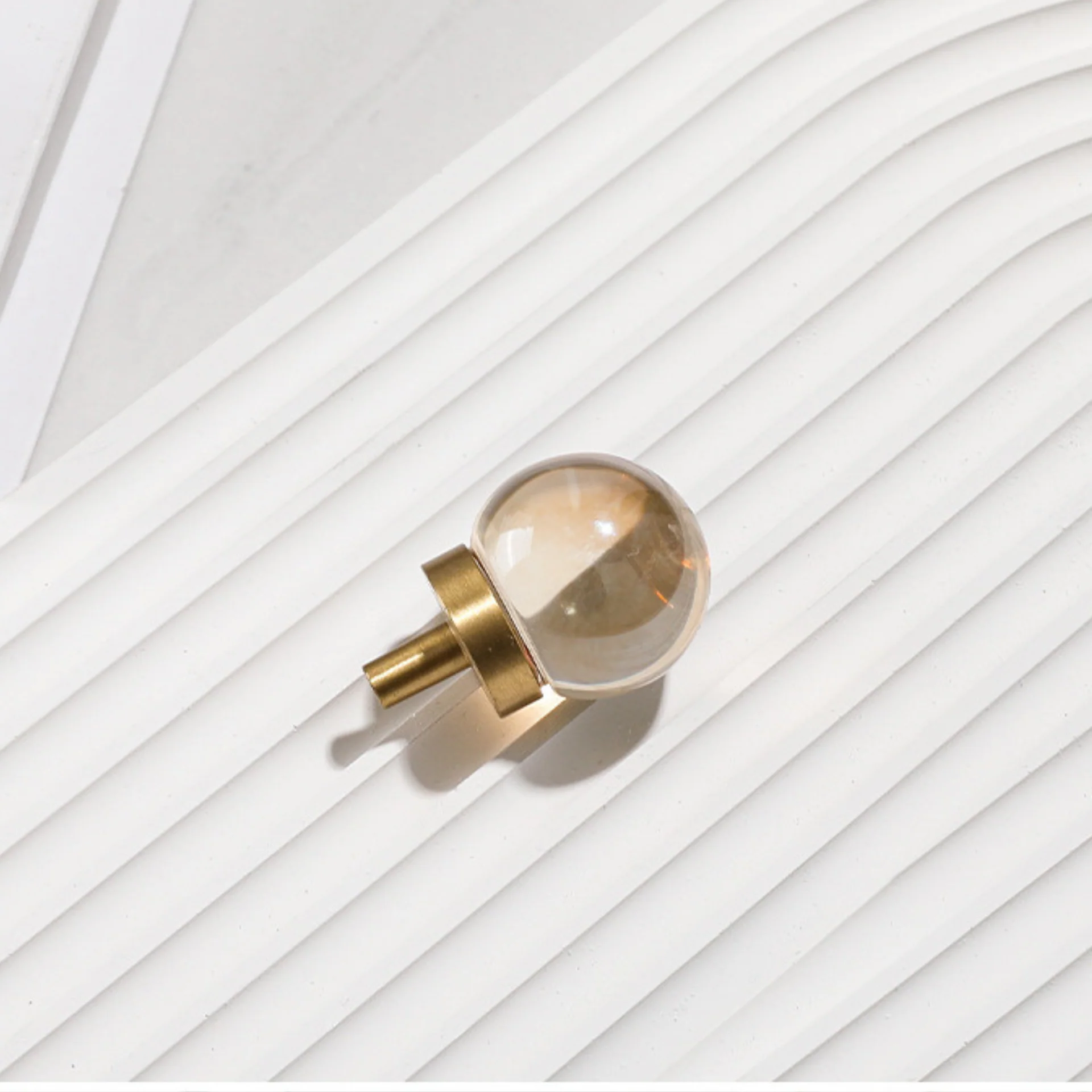 Add a touch of natural luxury to your furniture with the Natural Crystal Ball & Brass Knob Collection. These stunning pieces feature a perfectly spherical top made from genuine natural crystal, mounted on a sleek brushed brass pedestal base. The unique patterns and colors of the natural stone make each knob one-of-a-kind.