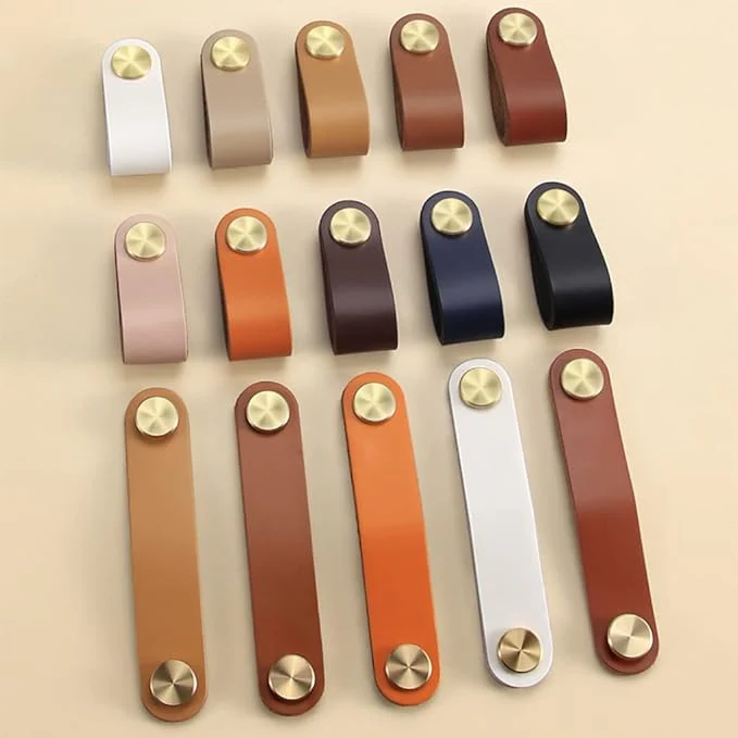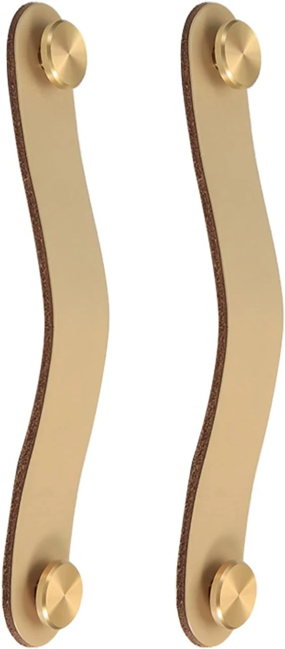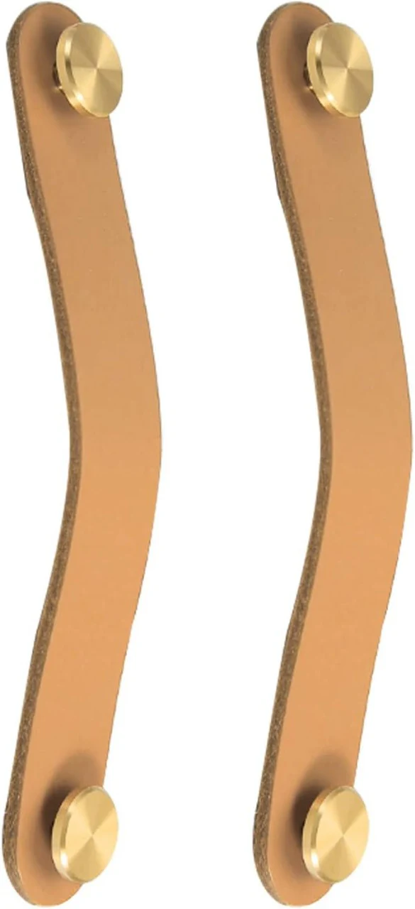 Add a unique, modern touch to your furniture with the Leather & Brass Strap Pulls. These stylish pulls are a perfect blend of natural and industrial materials, featuring a smooth, high-quality leather strap secured by a single brushed brass stud.