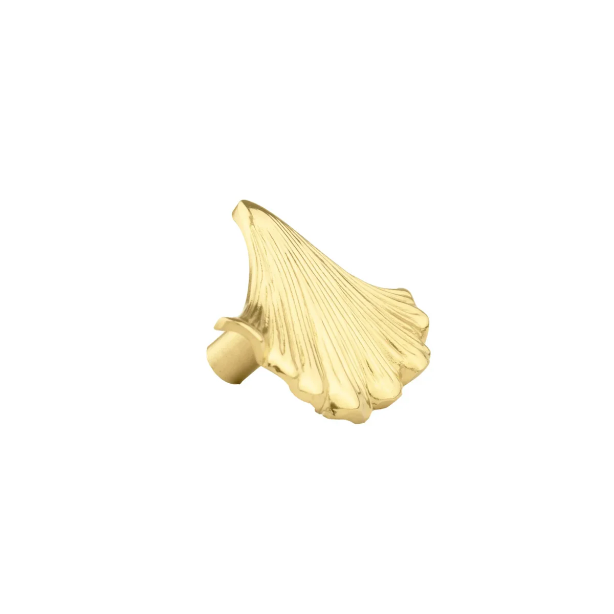 Add a touch of nature-inspired elegance to your home with the Solid Brass Ginkgo Leaf Pull. Crafted from high-quality solid brass, this decorative handle features a beautiful fan shape with intricate ridges, reminiscent of a ginkgo leaf or a delicate seashell.