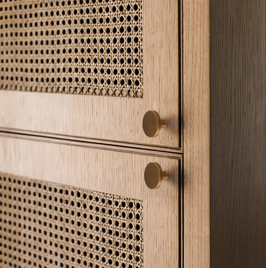 Upgrade your furniture with the Regal Solid Brass Knob. This knob features a clean, cylindrical design and a sophisticated brushed finish that makes it a perfect choice for modern and minimalist interiors.