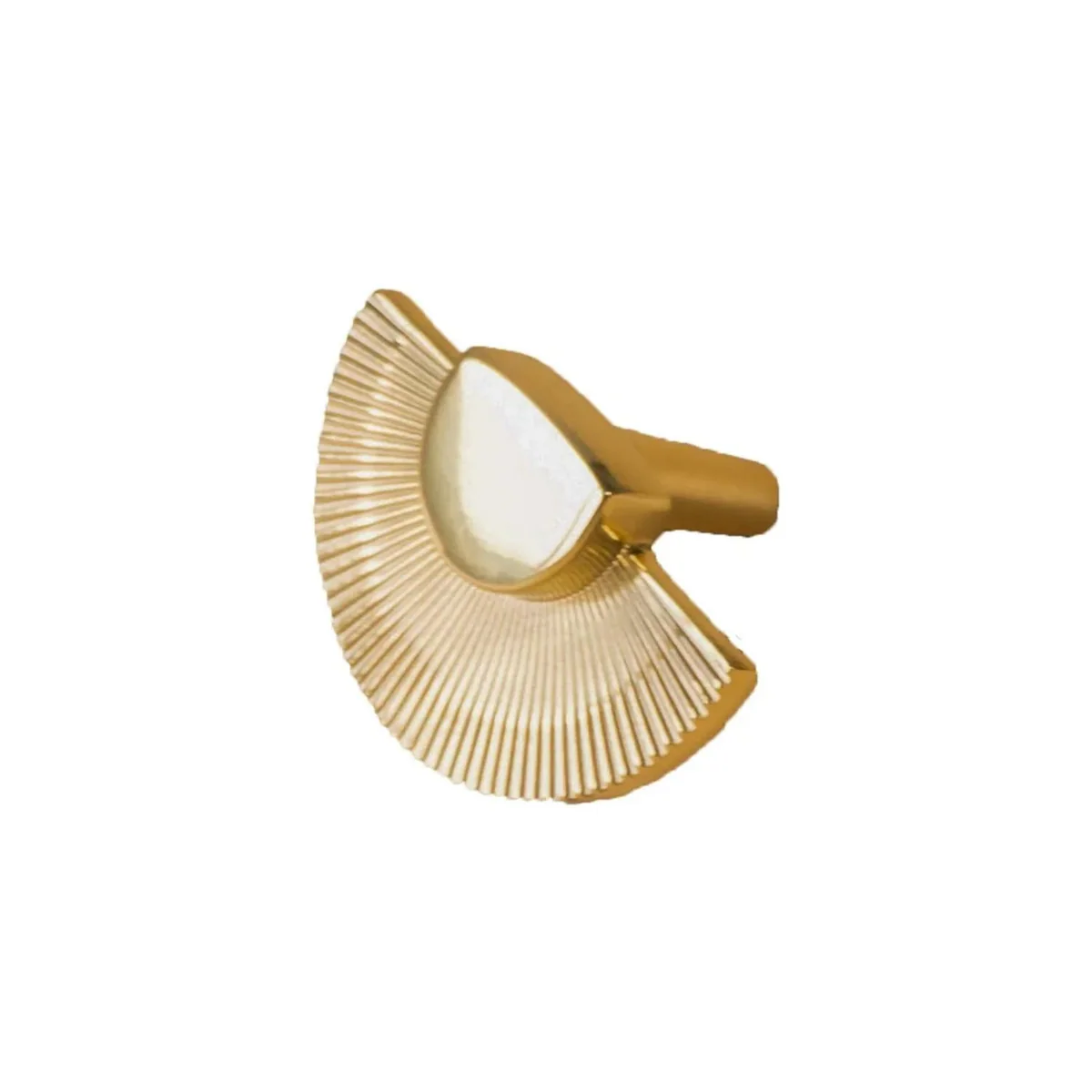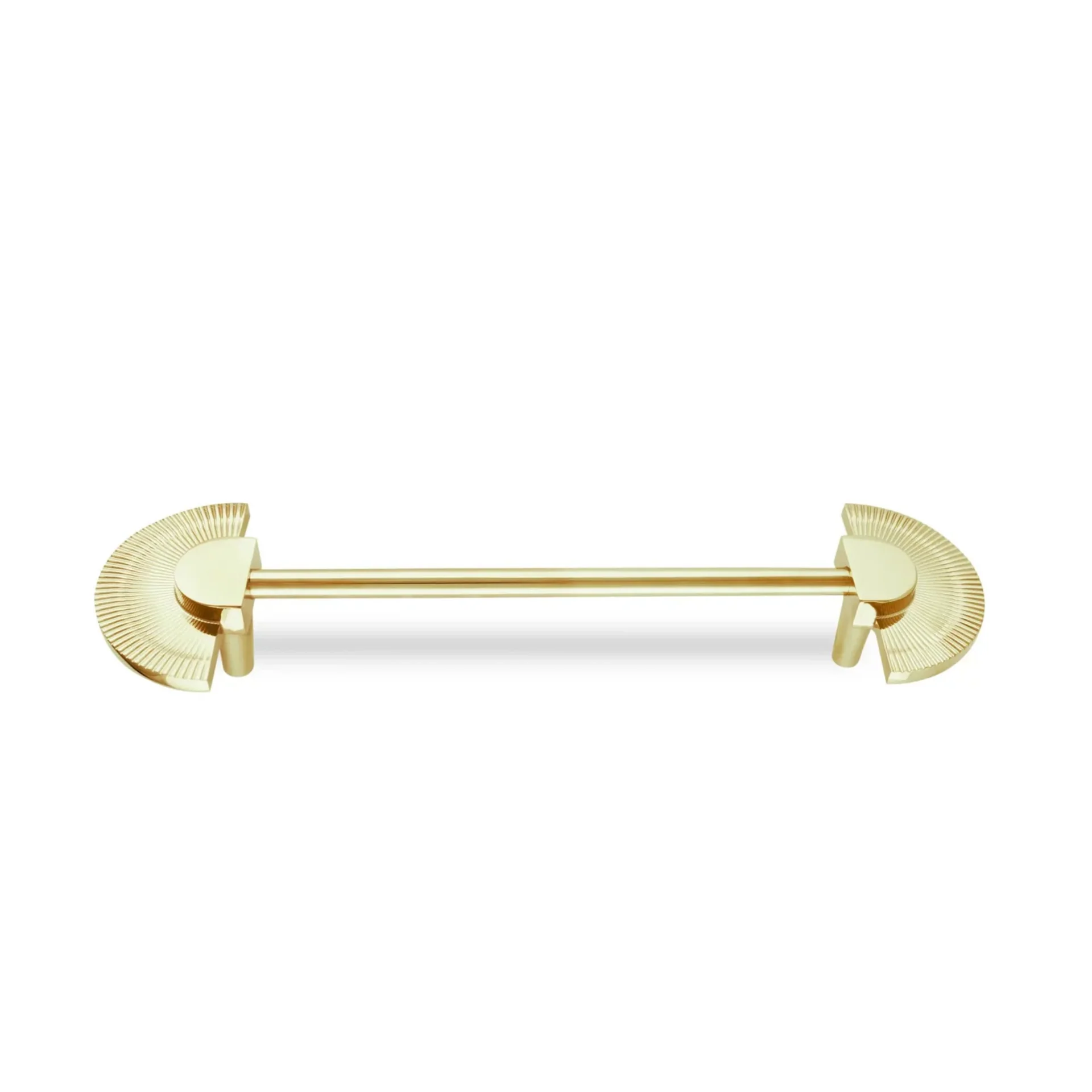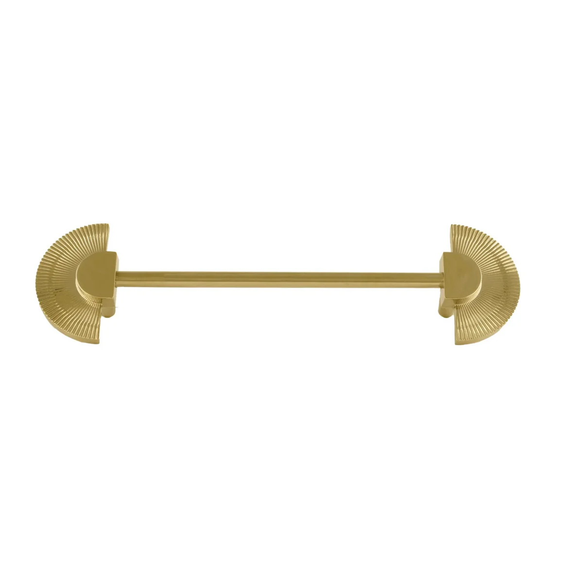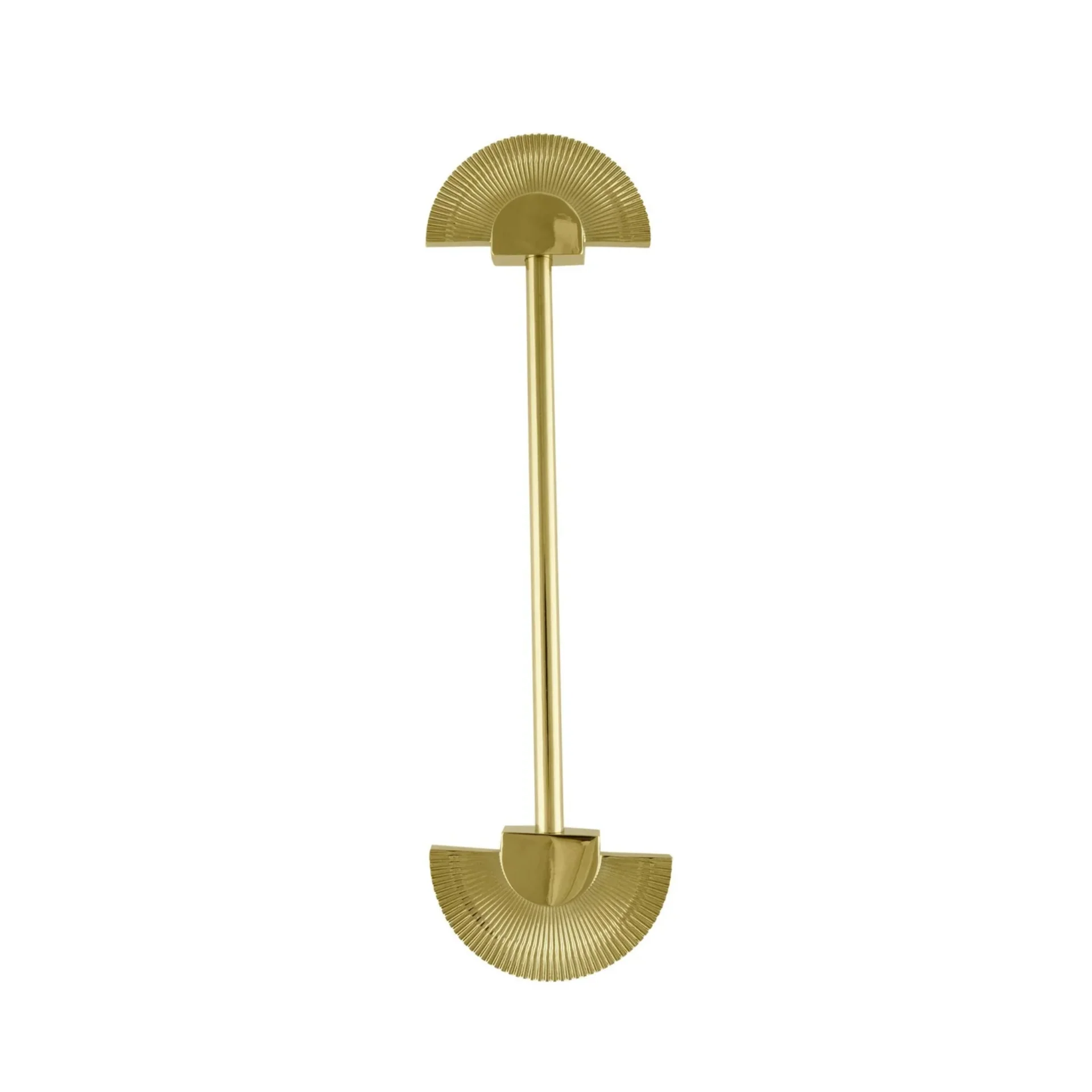 Make a bold statement with the Scalloped Brass Handle Collection. This elegant hardware features a beautiful fan-shaped, scalloped design that adds a touch of artistic flair to your furniture. The intricate end pieces are connected by a sleek bar, creating a perfect blend of decorative style and modern simplicity.