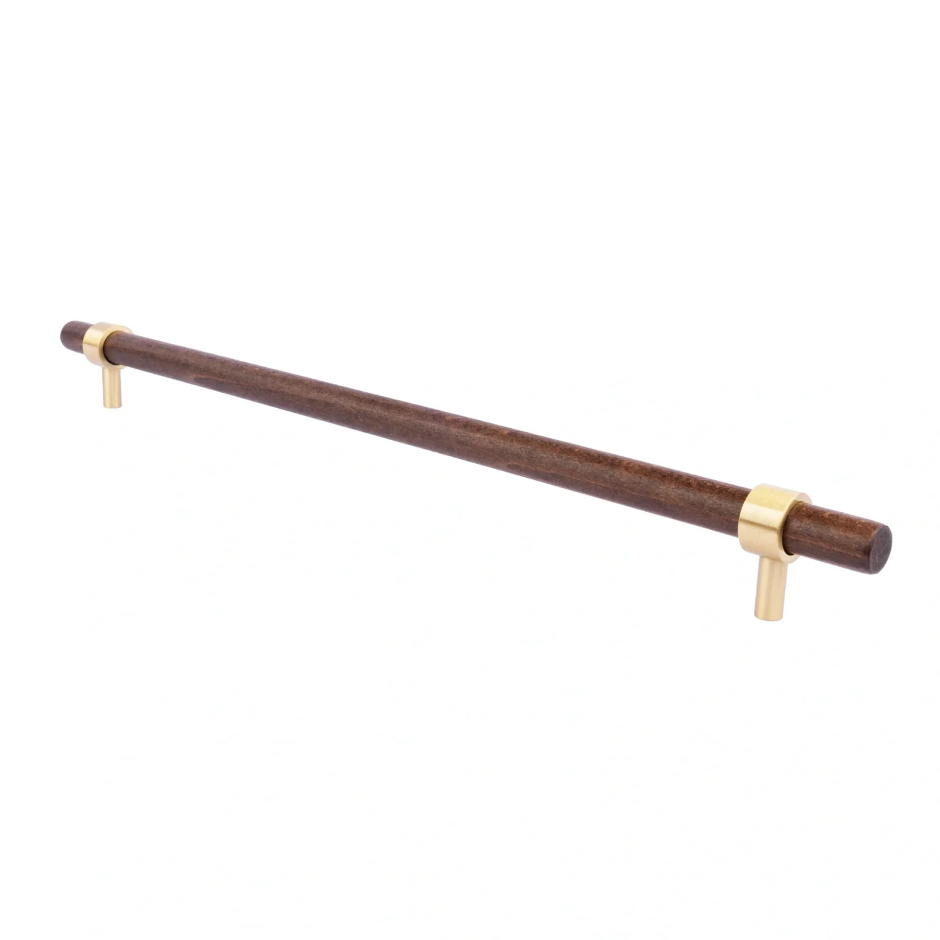Add a touch of natural sophistication to your cabinetry with the Walnut & Brass T-Bar Handles. These elegant pulls are a perfect blend of natural and industrial materials, featuring a smooth bar of genuine natural walnut wood contrasted with sleek brushed brass collars and feet.