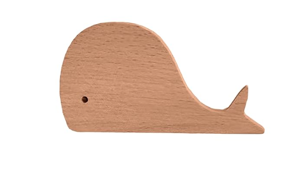 Handmade Whale Wooden Knob and Hook – Natural Beechwood & Walnut Nursery Handle